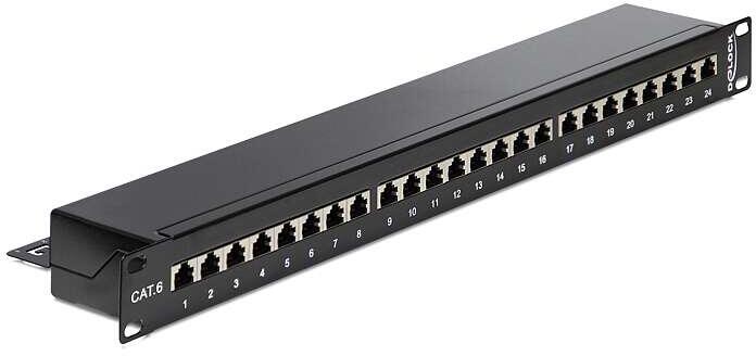 Delock 19" Cat. 6 Patch Panel - 24 Portos, Fekete: Stabil és Gyors Hálózatépítés ? A Delock 19" Cat. 6 patch panel ideális megoldás a strukturált hálózatok kiépítéséhez és karbantartásához. A 24 portos kialakítás lehetővé teszi számos eszköz egyidejű csatlakoztatását, míg a Cat. 6 szabvány garantálja a gyors és megbízható adatátvitelt. Főbb Jellemzők:24 db RJ45 port: Számos eszköz csatlakoztatásához ??️ Cat. 6 Class E: Megfelel az ISO/IEC 11801, EN 50173, ANSI/TIA 568 B. 2-1 szabványoknak a gyors adatátvitelért ⚡ 19" 1U méret: Könnyen beépíthető szabványos rack szekrényekbe ⚙️ Árnyékolt: Védi a jelet a külső interferenciától ?️ TIA-568A/B bekötés: Rugalmas kábelezési lehetőségek ? Fém ház: Tartós és megbízható védelem ? Fekete szín (RAL 9005): Esztétikus megjelenés ? Műszaki adatok:Jellemző ÉrtékCsatlakozók 24 x RJ45 (külső), LSA tömb (belső)Kábel átmérő Max. 0.644 mm (22 ~ 26 AWG)Kábel típusa Tömör vagy sodrott vezetékMéretek 483 x 109 x 44 mmSzín Jet fekete RAL 9005A csomag tartalma: 19" Patch Panel Kábelkötegelő Ez a patch panel kiválóan alkalmas otthoni és irodai hálózatokhoz, ahol fontos a stabilitás és a nagy sebesség. A megbízható Cat. 6 minősítés biztosítja, hogy a hálózatod a legújabb technológiákkal is kompatibilis legyen. ?