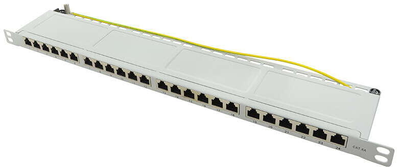 LogiLink Cat. 6A patch panel 24-port STP, szürke, fél egység magasságú (NP0062)